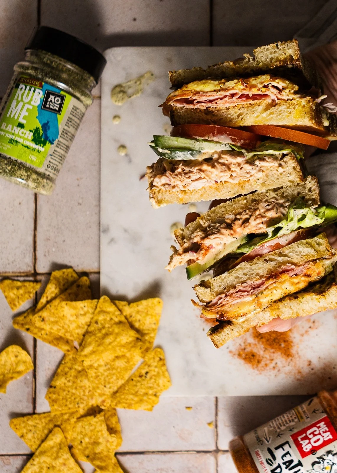 A club, A&O style! Featuring shredded chicken with a hit of Feather Duster, ham, cheese and all the salads, finished with a creamy ranch dressing to bring it all together. The sourdough bread made it feel super generous (and actually, just how a club should be…)